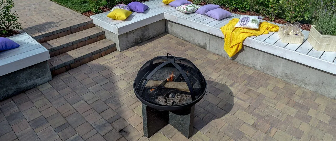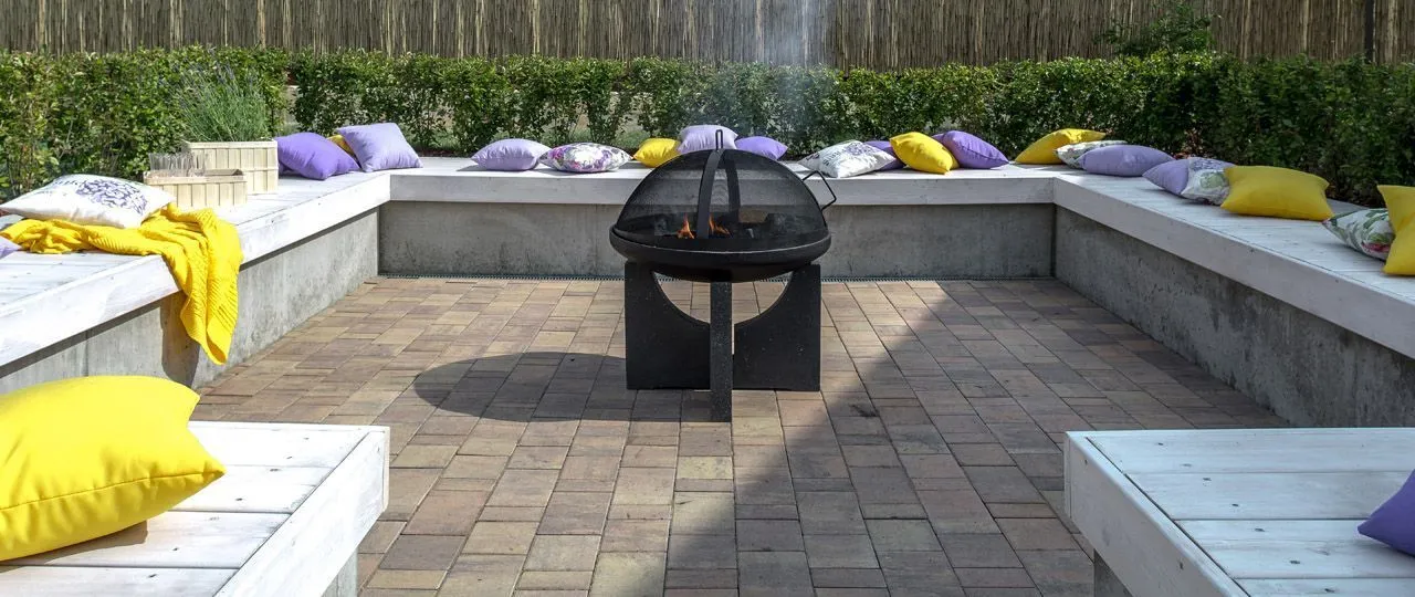 По мнению главных героев программы - Марины и Артема Баевых, костровое место, углубленное в землю – очень функционально: чем не «дом под землей», о котором мечтали дети - Федя и Миша, и в то же время оно напоминает осушенный бассейн. При желании туда можно поставит надувной бассейн, тем более что там продуман слив-дренаж. Также эту углубленную в землю нишу можно использовать как сцену, о чем мечтала наша доченька Маргарита, да и все наши дети любят устраивать нам разные концерты и театральные этюды. В середине очаг, вокруг которого скамейки, украшенные разноцветными декоративными подушечками, на которых могут с комфортом расположиться огромное количество гостей! А какое изысканное кашпо с цветущей в нем лавандой!