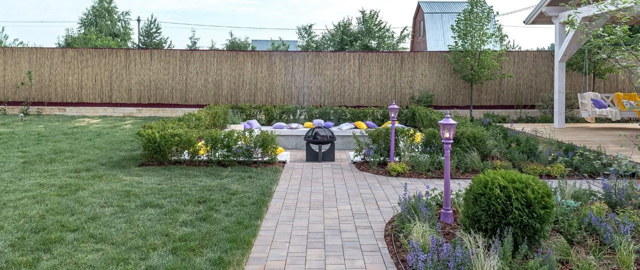 Из беседки по широким, удобным дорожкам можно будет пройти во все зоны сада, в том числе к большому костровому месту. В светлое время суток здесь могут играть дети, а вечером можно будет устроить посиделки у костра. От остального пространства эту площадку будет отделять стриженая изгородь из кизильника. Эту историю поддержат шары из стриженой туи – любимого дерева главы семьи наших героев.