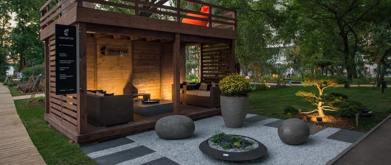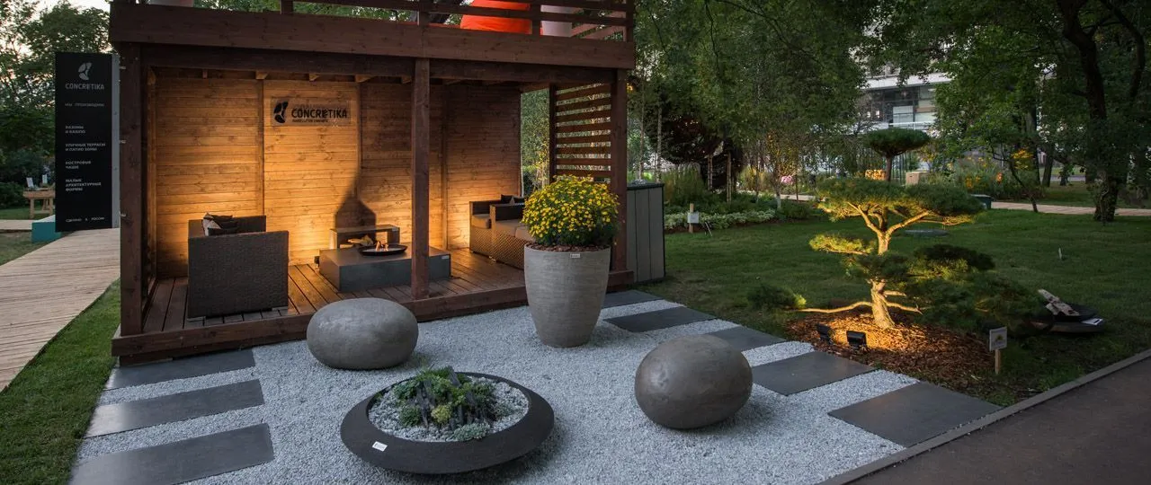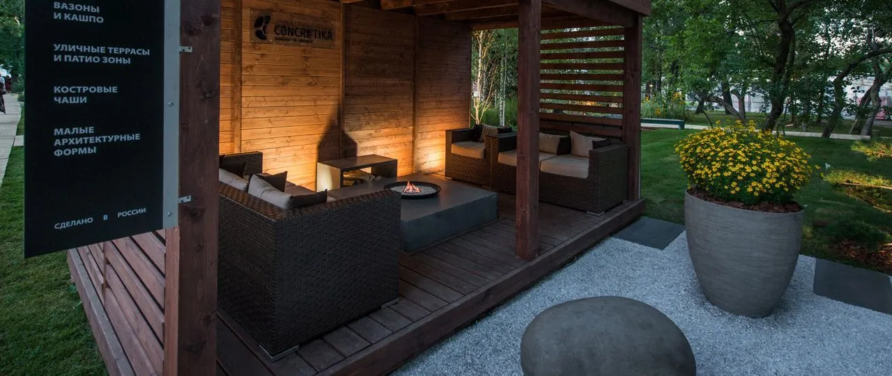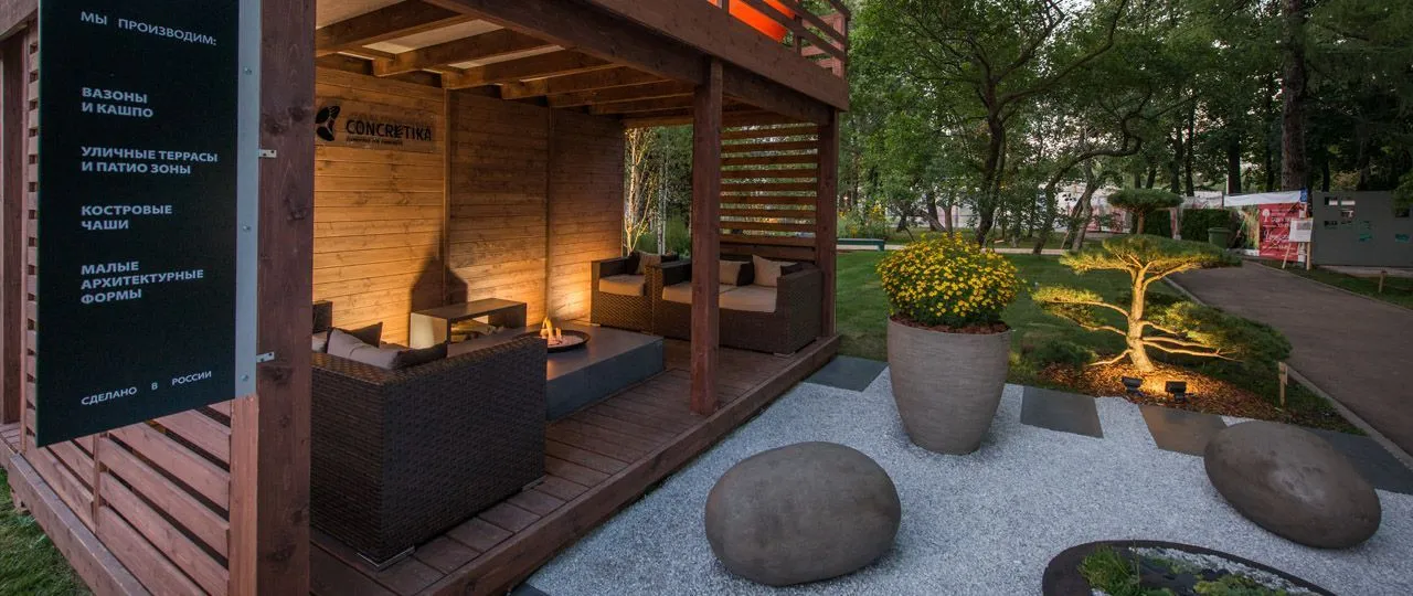 Как и на других выставках по ландшафтному дизайну, мы представили концепцию сада, в который интегрированы наши изделия. Для большинства людей, у которых есть загородный дом, важным элементом благоустройства является терраса или патио зона – место, где можно собираться всей семьей.