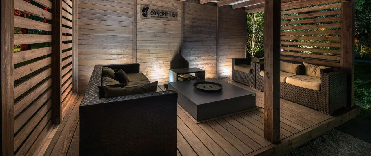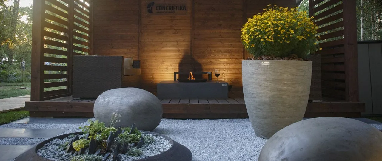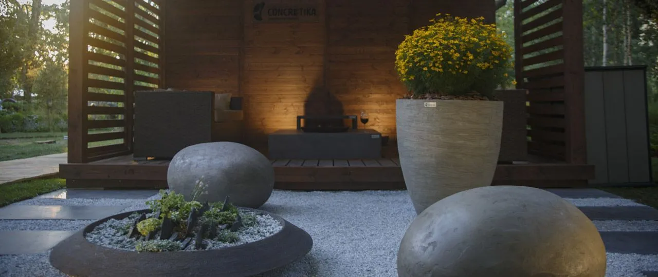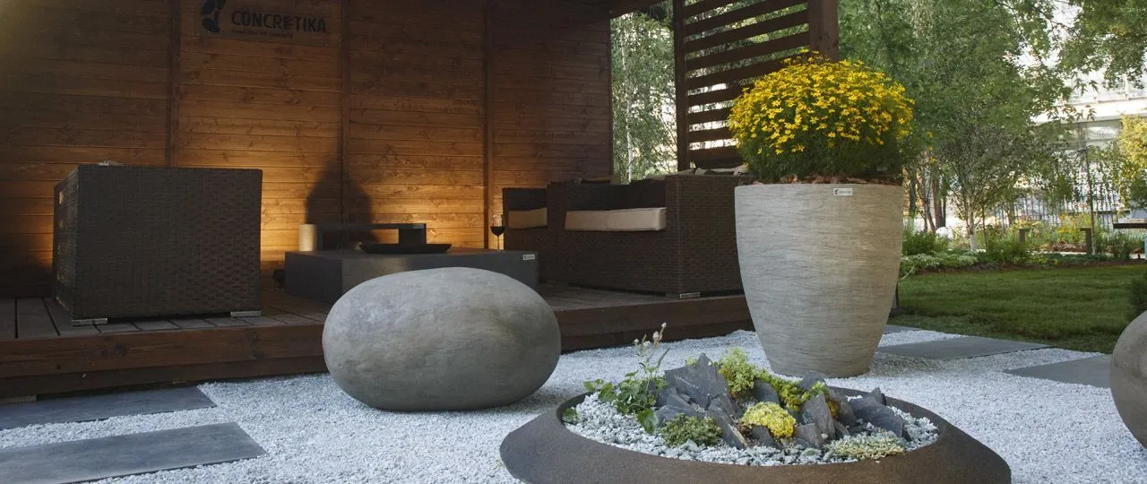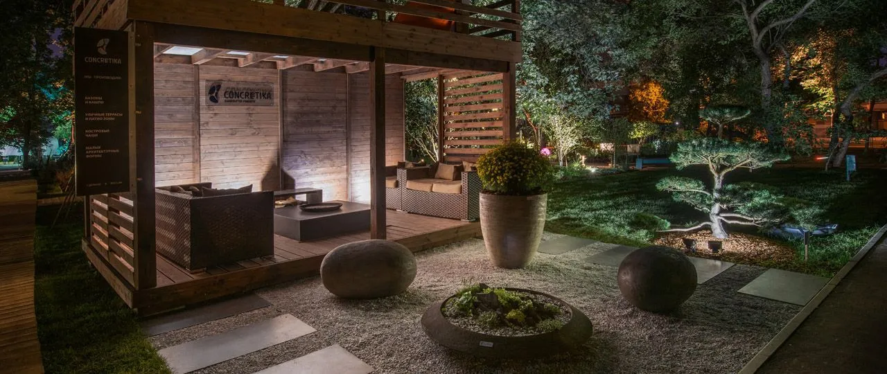 Как и на других выставках по ландшафтному дизайну, мы представили концепцию сада, в который интегрированы наши изделия. Для большинства людей, у которых есть загородный дом, важным элементом благоустройства является терраса или патио зона – место, где можно собираться всей семьей.