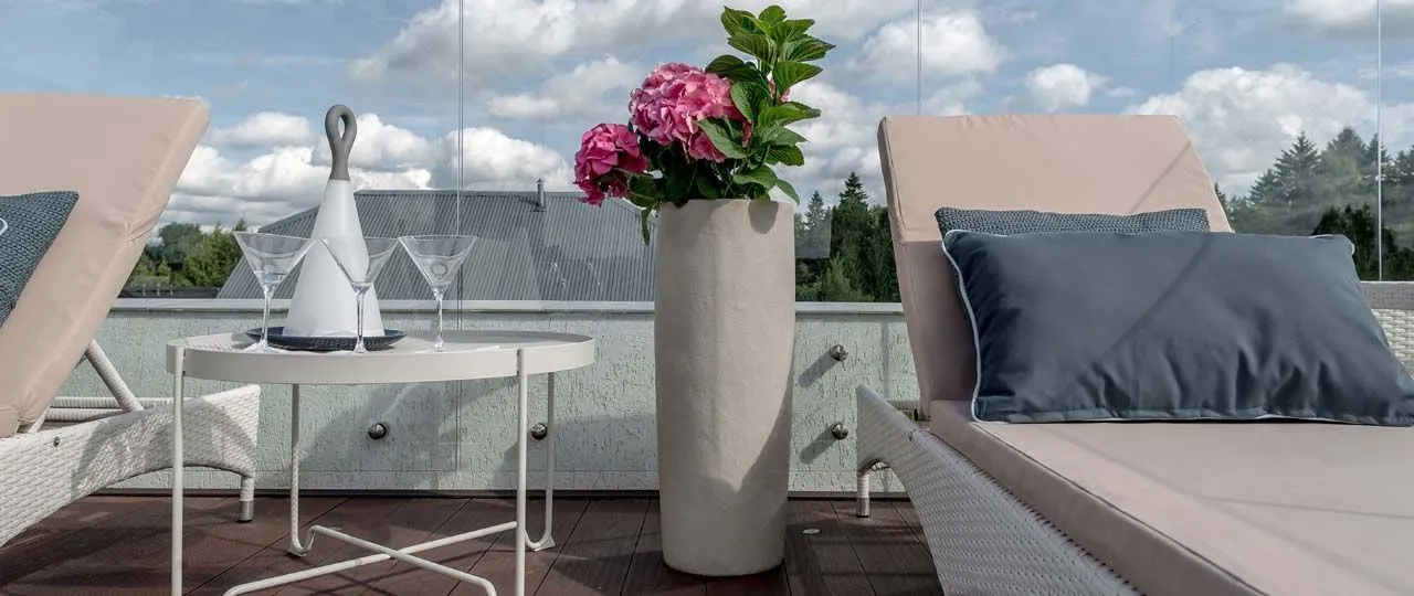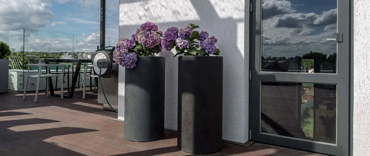 Важно отметить, что бетонные кашпо из фибробетона идеально подходят для озеленения кровли. Вес каждого кашпо варьируется в районе 20-30 кг. С одной стороны, они достаточно легкие, чтобы их можно было перемещать при необходимости, а также они выдерживают нормативы по нагрузке на 1 квадратный метр перекрытий, а с другой стороны, они достаточно тяжелые, чтобы порывы ветра не опрокинули растения.