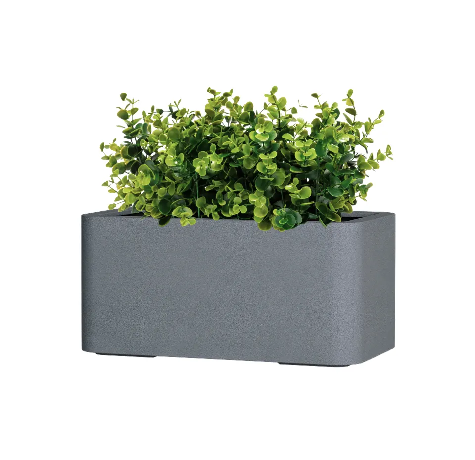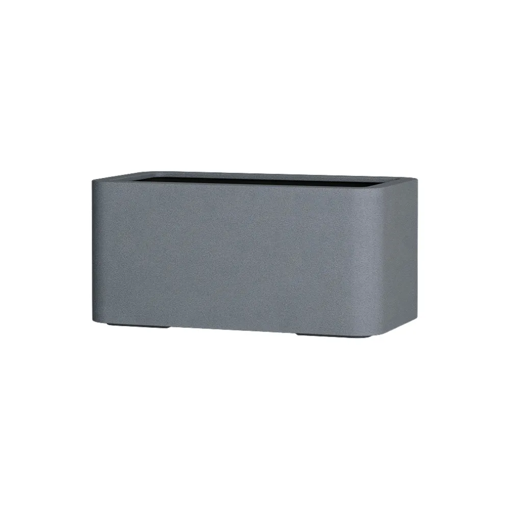Прямоугольное кашпо вытянутой формы с плавно скруглёнными краями и гранями — стильное решение для балконов и террас. Его мягкие линии смягчают строгую геометрию, создавая гармоничный и современный образ, а вытянутый формат позволяет высаживать целые композиции из цветов или зелени вдоль перил и стен. Такая форма экономит пространство, при этом делая озеленение выразительным и аккуратным.