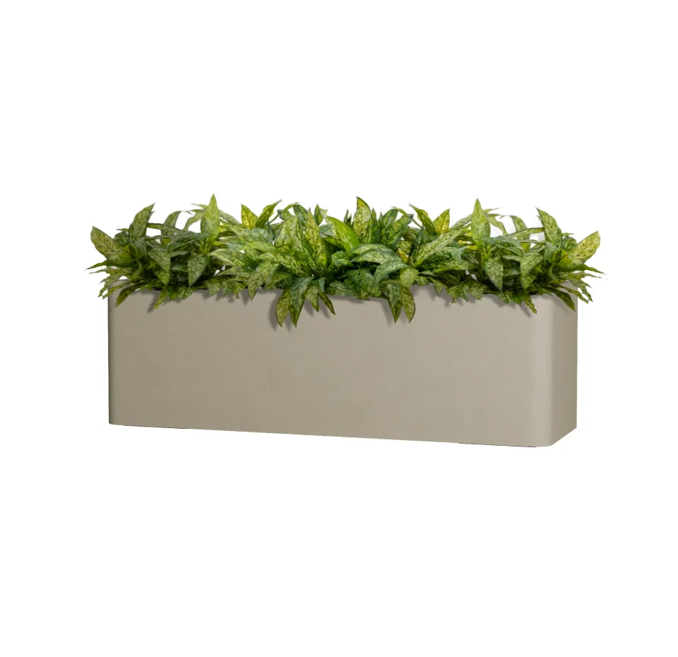 Прямоугольное кашпо вытянутой формы с плавно скруглёнными краями и гранями — стильное решение для балконов и террас. Его мягкие линии смягчают строгую геометрию, создавая гармоничный и современный образ, а вытянутый формат позволяет высаживать целые композиции из цветов или зелени вдоль перил и стен. Такая форма экономит пространство, при этом делая озеленение выразительным и аккуратным.