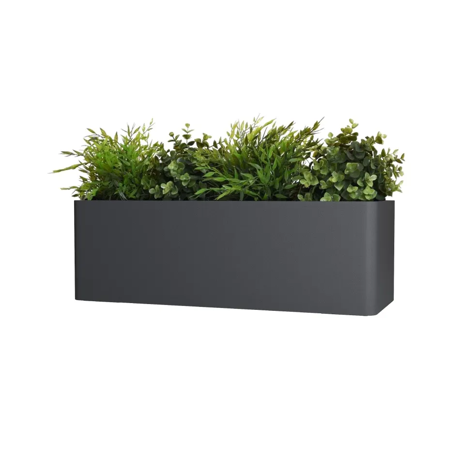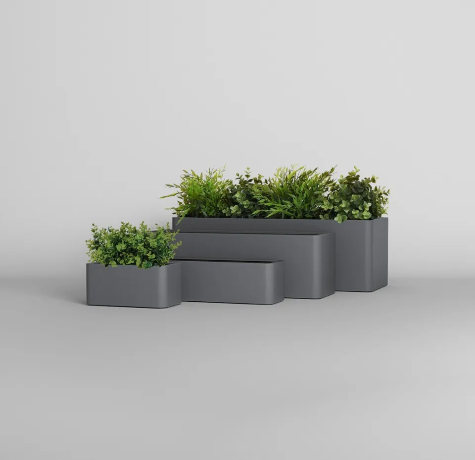Прямоугольное кашпо вытянутой формы с плавно скруглёнными краями и гранями — стильное решение для балконов и террас. Его мягкие линии смягчают строгую геометрию, создавая гармоничный и современный образ, а вытянутый формат позволяет высаживать целые композиции из цветов или зелени вдоль перил и стен. Такая форма экономит пространство, при этом делая озеленение выразительным и аккуратным.