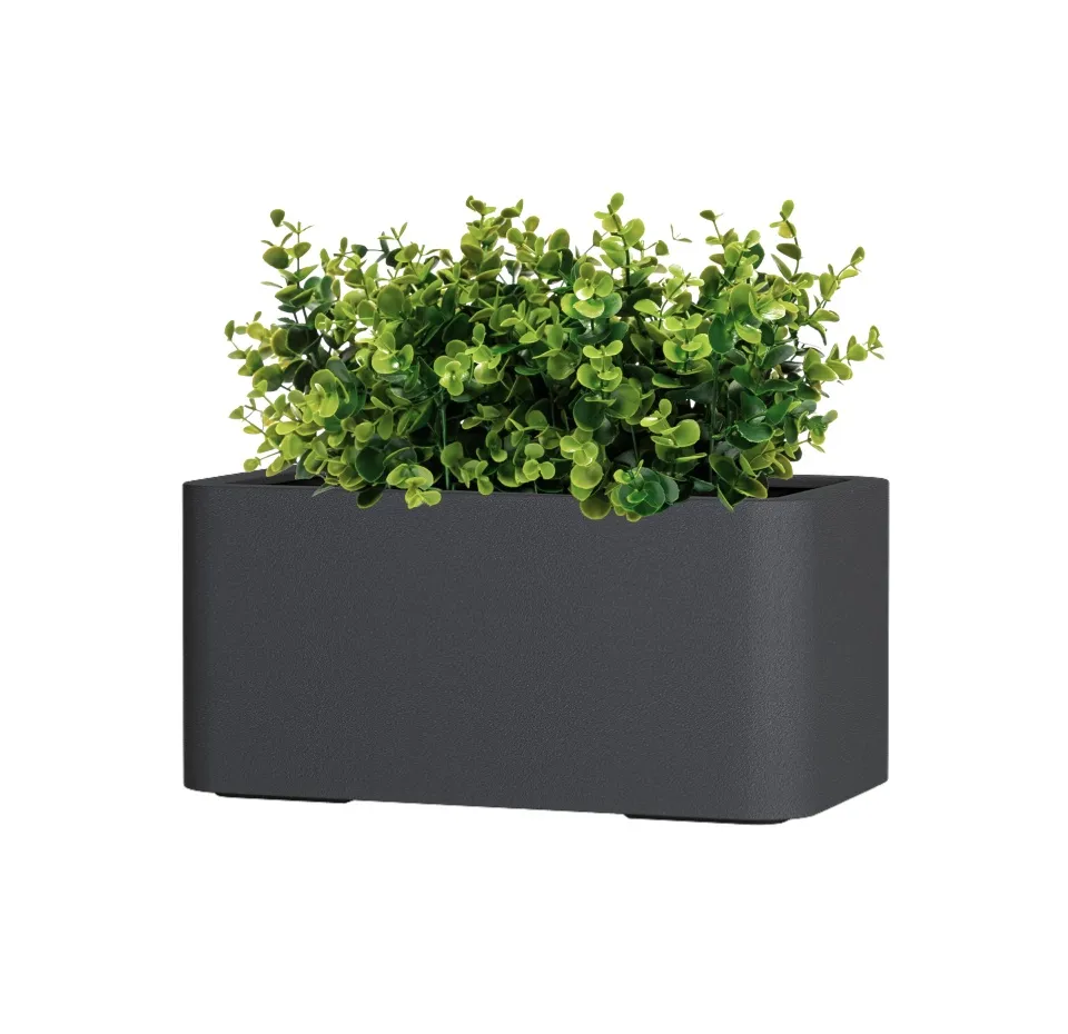 Прямоугольное кашпо вытянутой формы с плавно скруглёнными краями и гранями — стильное решение для балконов и террас. Его мягкие линии смягчают строгую геометрию, создавая гармоничный и современный образ, а вытянутый формат позволяет высаживать целые композиции из цветов или зелени вдоль перил и стен. Такая форма экономит пространство, при этом делая озеленение выразительным и аккуратным.