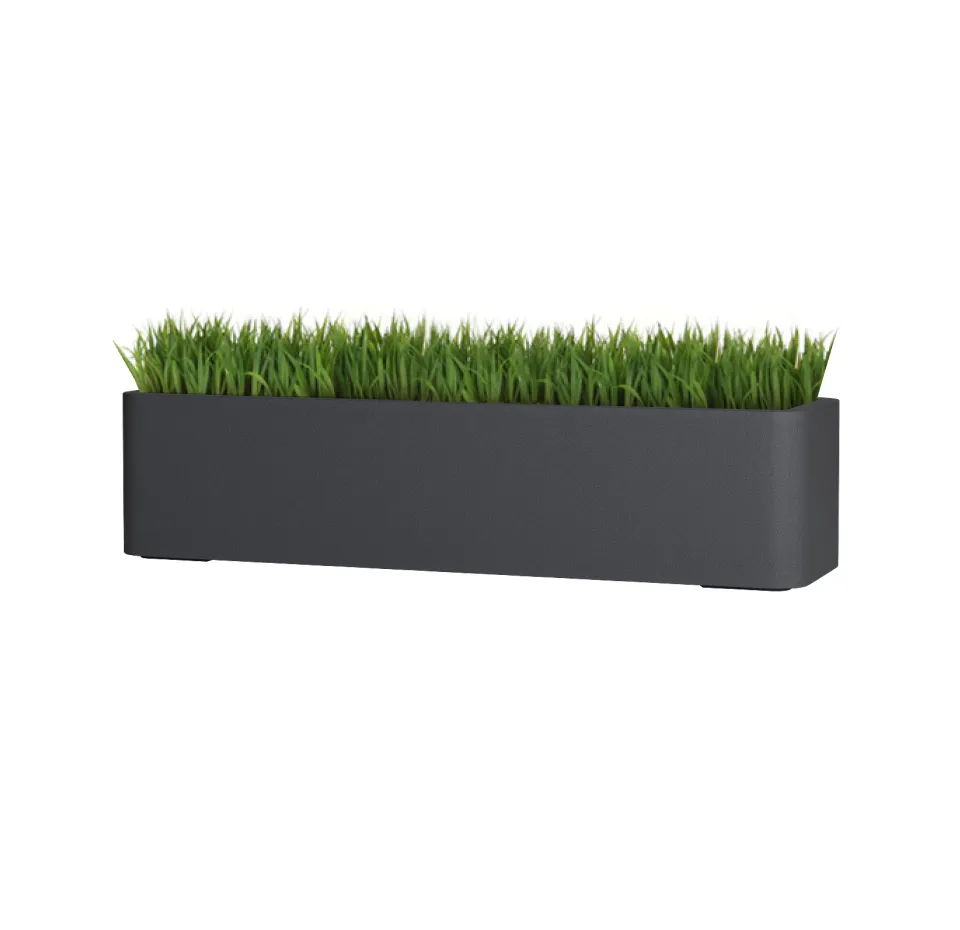 Прямоугольное кашпо вытянутой формы с плавно скруглёнными краями и гранями — стильное решение для балконов и террас. Его мягкие линии смягчают строгую геометрию, создавая гармоничный и современный образ, а вытянутый формат позволяет высаживать целые композиции из цветов или зелени вдоль перил и стен. Такая форма экономит пространство, при этом делая озеленение выразительным и аккуратным.