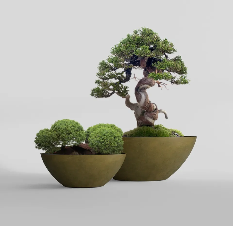 Форма отсылает к многовековому японскому исскуству выращивания миниатюрных деревьев – бонсай. Кашпо этого вида обычно низкие, неглубокие и широкие, с изогнутыми краями, которые только подчеркивают природную форму такой чаши. В таком кашпо хорошо удерживается почва, влага, но при этом обеспечивается хорошая аэрация корней. Форма Бонсай создает сбалансированную и стабильную среду для роста и развития растения, обеспечивает корням широкое, достаточное для развития пространство.