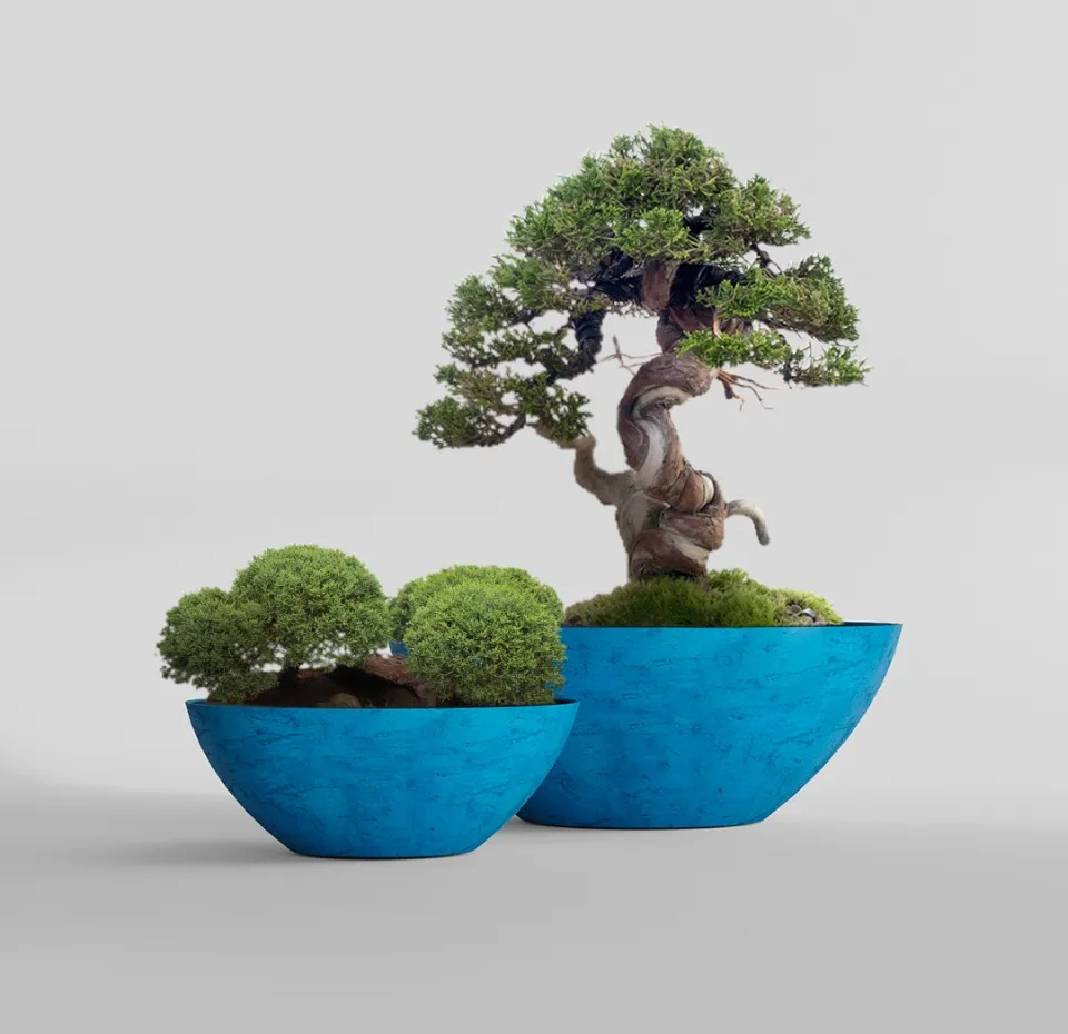 Форма отсылает к многовековому японскому исскуству выращивания миниатюрных деревьев – бонсай. Кашпо этого вида обычно низкие, неглубокие и широкие, с изогнутыми краями, которые только подчеркивают природную форму такой чаши. В таком кашпо хорошо удерживается почва, влага, но при этом обеспечивается хорошая аэрация корней. Форма Бонсай создает сбалансированную и стабильную среду для роста и развития растения, обеспечивает корням широкое, достаточное для развития пространство.