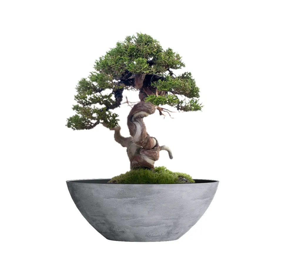 Форма отсылает к многовековому японскому исскуству выращивания миниатюрных деревьев – бонсай. Кашпо этого вида обычно низкие, неглубокие и широкие, с изогнутыми краями, которые только подчеркивают природную форму такой чаши. В таком кашпо хорошо удерживается почва, влага, но при этом обеспечивается хорошая аэрация корней. Форма Бонсай создает сбалансированную и стабильную среду для роста и развития растения, обеспечивает корням широкое, достаточное для развития пространство.