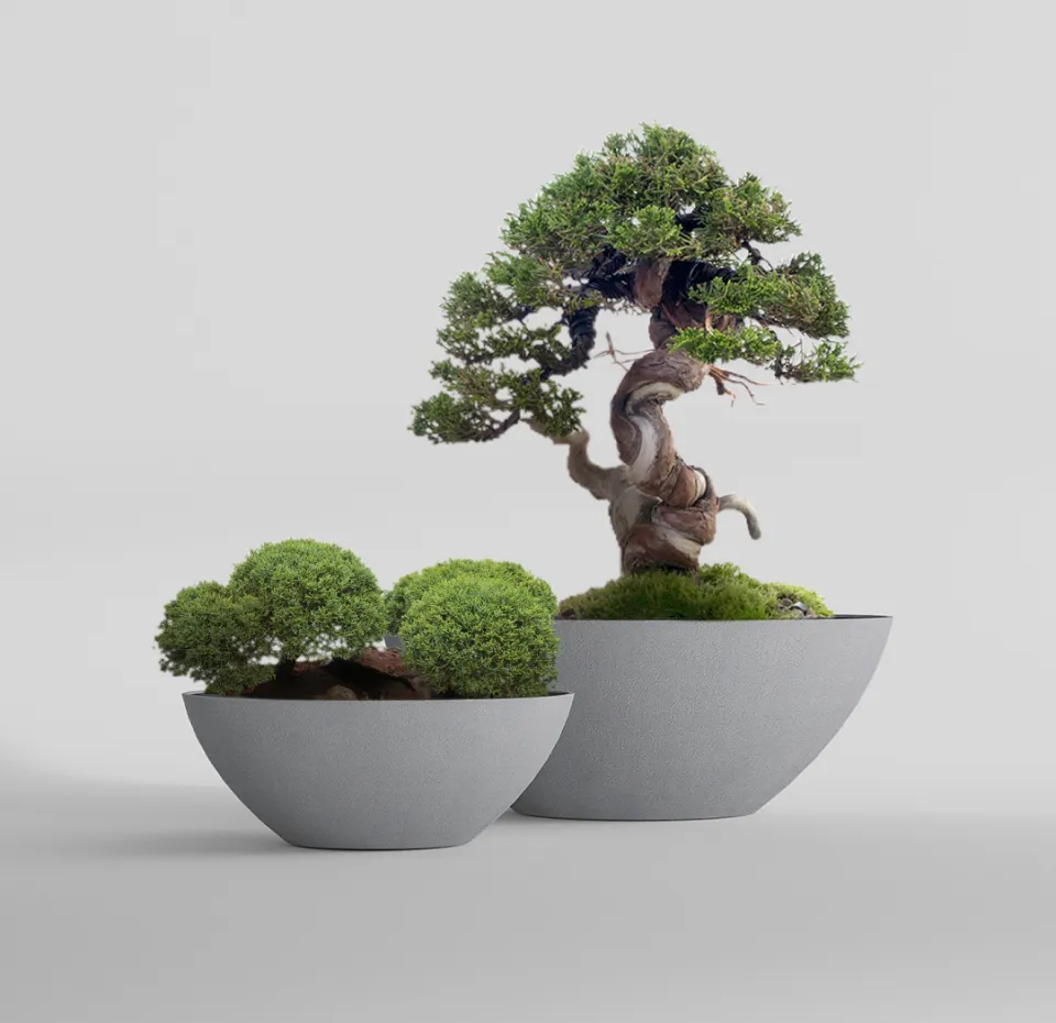 Форма отсылает к многовековому японскому исскуству выращивания миниатюрных деревьев – бонсай. Кашпо этого вида обычно низкие, неглубокие и широкие, с изогнутыми краями, которые только подчеркивают природную форму такой чаши. В таком кашпо хорошо удерживается почва, влага, но при этом обеспечивается хорошая аэрация корней. Форма Бонсай создает сбалансированную и стабильную среду для роста и развития растения, обеспечивает корням широкое, достаточное для развития пространство.