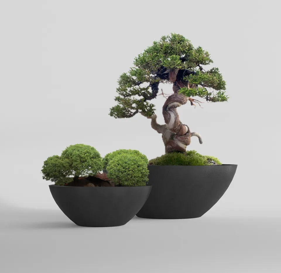 Форма отсылает к многовековому японскому исскуству выращивания миниатюрных деревьев – бонсай. Кашпо этого вида обычно низкие, неглубокие и широкие, с изогнутыми краями, которые только подчеркивают природную форму такой чаши. В таком кашпо хорошо удерживается почва, влага, но при этом обеспечивается хорошая аэрация корней. Форма Бонсай создает сбалансированную и стабильную среду для роста и развития растения, обеспечивает корням широкое, достаточное для развития пространство.