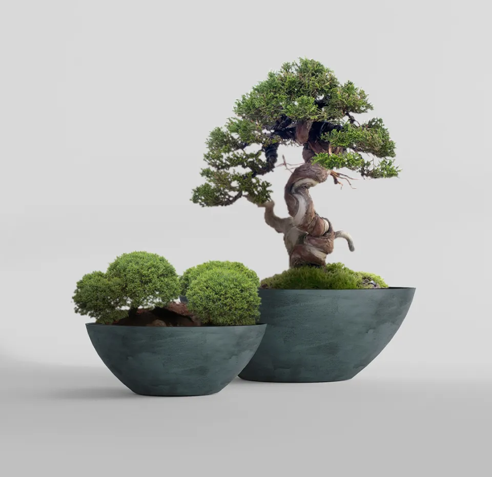 Форма отсылает к многовековому японскому исскуству выращивания миниатюрных деревьев – бонсай. Кашпо этого вида обычно низкие, неглубокие и широкие, с изогнутыми краями, которые только подчеркивают природную форму такой чаши. В таком кашпо хорошо удерживается почва, влага, но при этом обеспечивается хорошая аэрация корней. Форма Бонсай создает сбалансированную и стабильную среду для роста и развития растения, обеспечивает корням широкое, достаточное для развития пространство.
