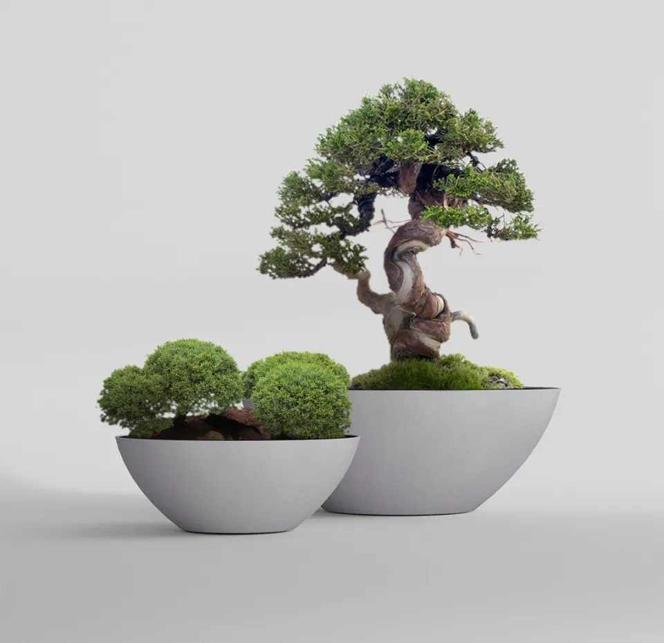 Форма отсылает к многовековому японскому исскуству выращивания миниатюрных деревьев – бонсай. Кашпо этого вида обычно низкие, неглубокие и широкие, с изогнутыми краями, которые только подчеркивают природную форму такой чаши. В таком кашпо хорошо удерживается почва, влага, но при этом обеспечивается хорошая аэрация корней. Форма Бонсай создает сбалансированную и стабильную среду для роста и развития растения, обеспечивает корням широкое, достаточное для развития пространство.