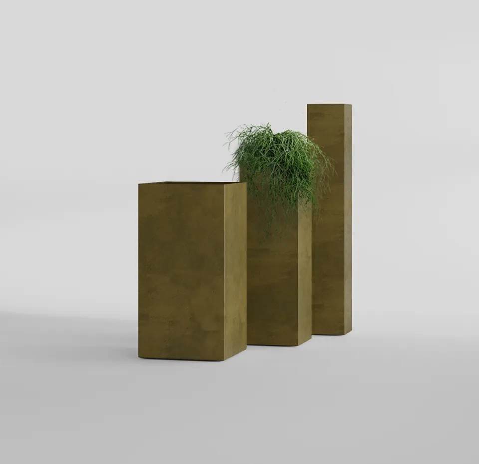 Кашпо в форме прямоугольной колонны — стильный акцент для современных пространств. Лаконичная геометрия и вертикальные пропорции придают интерьеру архитектурную выразительность и визуальную лёгкость. Такие кашпо гармонично вписываются в минималистичные, скандинавские, лофт, hi-tech и современные классические интерьеры, а также эффектно смотрятся в общественных зонах, офисах, галереях и на террасах.