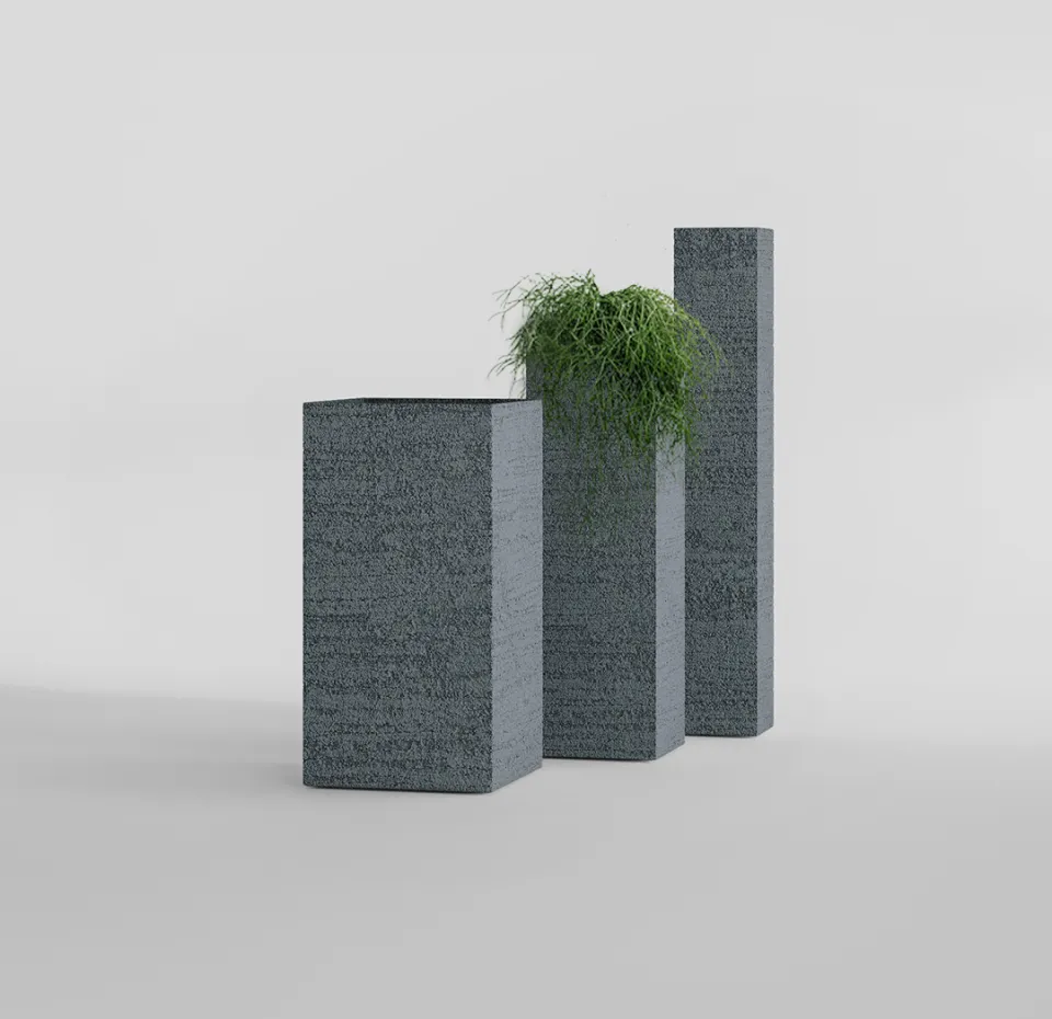 Кашпо в форме прямоугольной колонны — стильный акцент для современных пространств. Лаконичная геометрия и вертикальные пропорции придают интерьеру архитектурную выразительность и визуальную лёгкость. Такие кашпо гармонично вписываются в минималистичные, скандинавские, лофт, hi-tech и современные классические интерьеры, а также эффектно смотрятся в общественных зонах, офисах, галереях и на террасах.