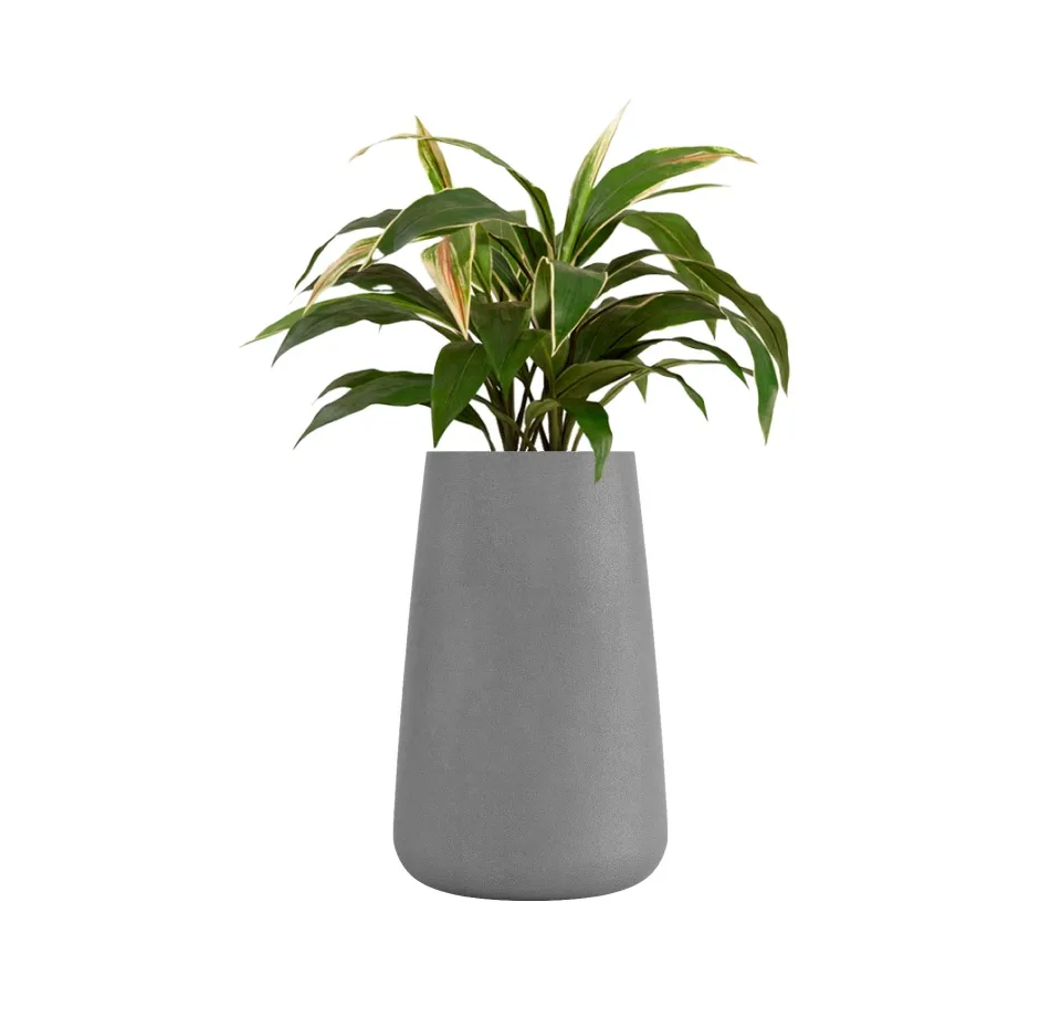 Узкая у вершины и широкая в основании форма предотвращает потерю почвой влаги, обеспечивает достаточным пространством даже крупные корневые системы, подходит для поддержки растений с длинным стеблем. Такое кашпо более прочное, устойчивое, мягкие изгибы этой формы создают приятное визуальное впечатление, изысканно смотрится в самых разных пространствах.