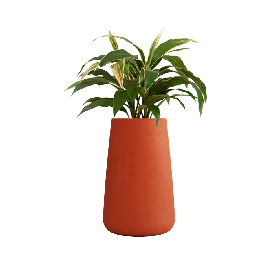 Узкая у вершины и широкая в основании форма предотвращает потерю почвой влаги, обеспечивает достаточным пространством даже крупные корневые системы, подходит для поддержки растений с длинным стеблем. Такое кашпо более прочное, устойчивое, мягкие изгибы этой формы создают приятное визуальное впечатление, изысканно смотрится в самых разных пространствах.