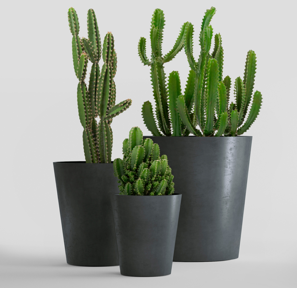Круглая воронка расширяется вверх, как будто ее только что поразила природная стихия. Четкие линии и уверенный силуэт делают эту форму кашпо универсальной для использования и на открытом воздухе, и внутри помещений.