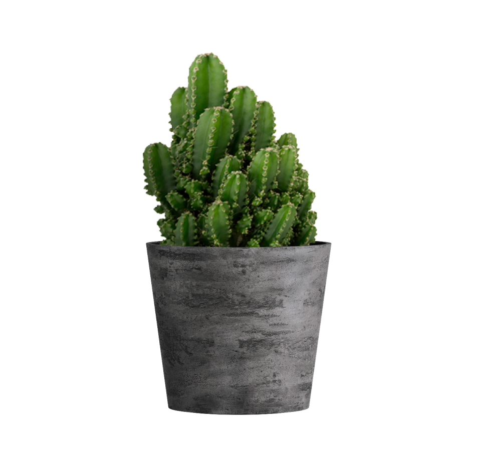 Круглая воронка расширяется вверх, как будто ее только что поразила природная стихия. Четкие линии и уверенный силуэт делают эту форму кашпо универсальной для использования и на открытом воздухе, и внутри помещений.