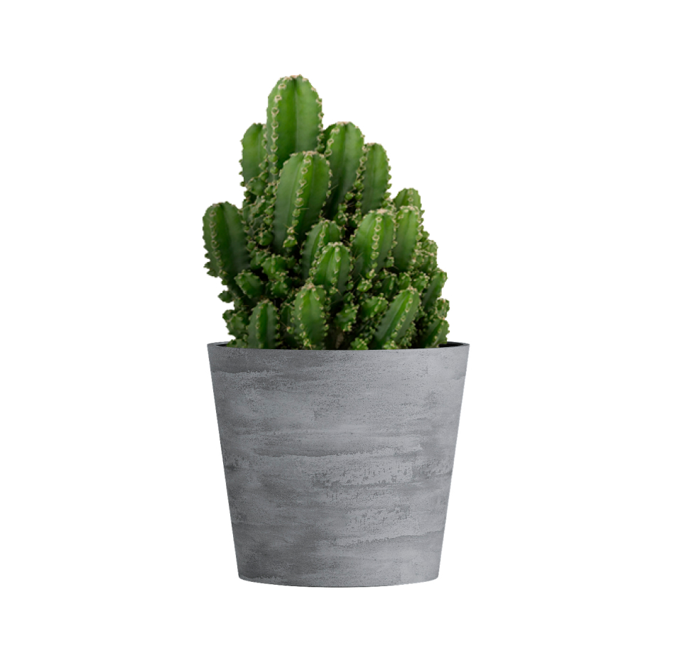 Круглая воронка расширяется вверх, как будто ее только что поразила природная стихия. Четкие линии и уверенный силуэт делают эту форму кашпо универсальной для использования и на открытом воздухе, и внутри помещений.