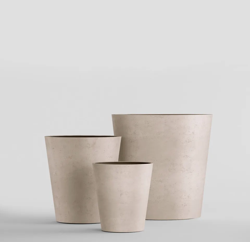 Круглая воронка расширяется вверх, как будто ее только что поразила природная стихия. Четкие линии и уверенный силуэт делают эту форму кашпо универсальной для использования и на открытом воздухе, и внутри помещений.