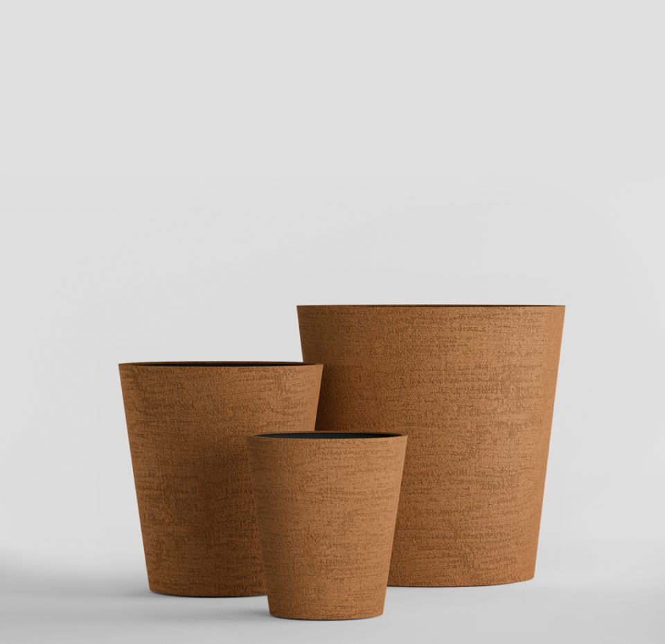 Круглая воронка расширяется вверх, как будто ее только что поразила природная стихия. Четкие линии и уверенный силуэт делают эту форму кашпо универсальной для использования и на открытом воздухе, и внутри помещений.