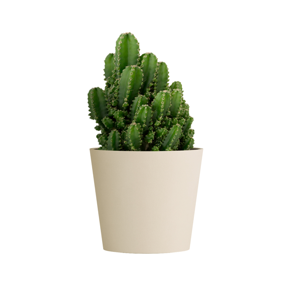 Круглая воронка расширяется вверх, как будто ее только что поразила природная стихия. Четкие линии и уверенный силуэт делают эту форму кашпо универсальной для использования и на открытом воздухе, и внутри помещений.