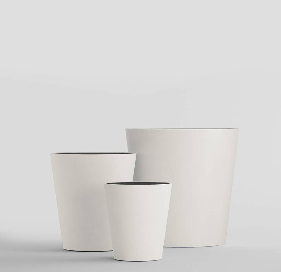 Круглая воронка расширяется вверх, как будто ее только что поразила природная стихия. Четкие линии и уверенный силуэт делают эту форму кашпо универсальной для использования и на открытом воздухе, и внутри помещений.