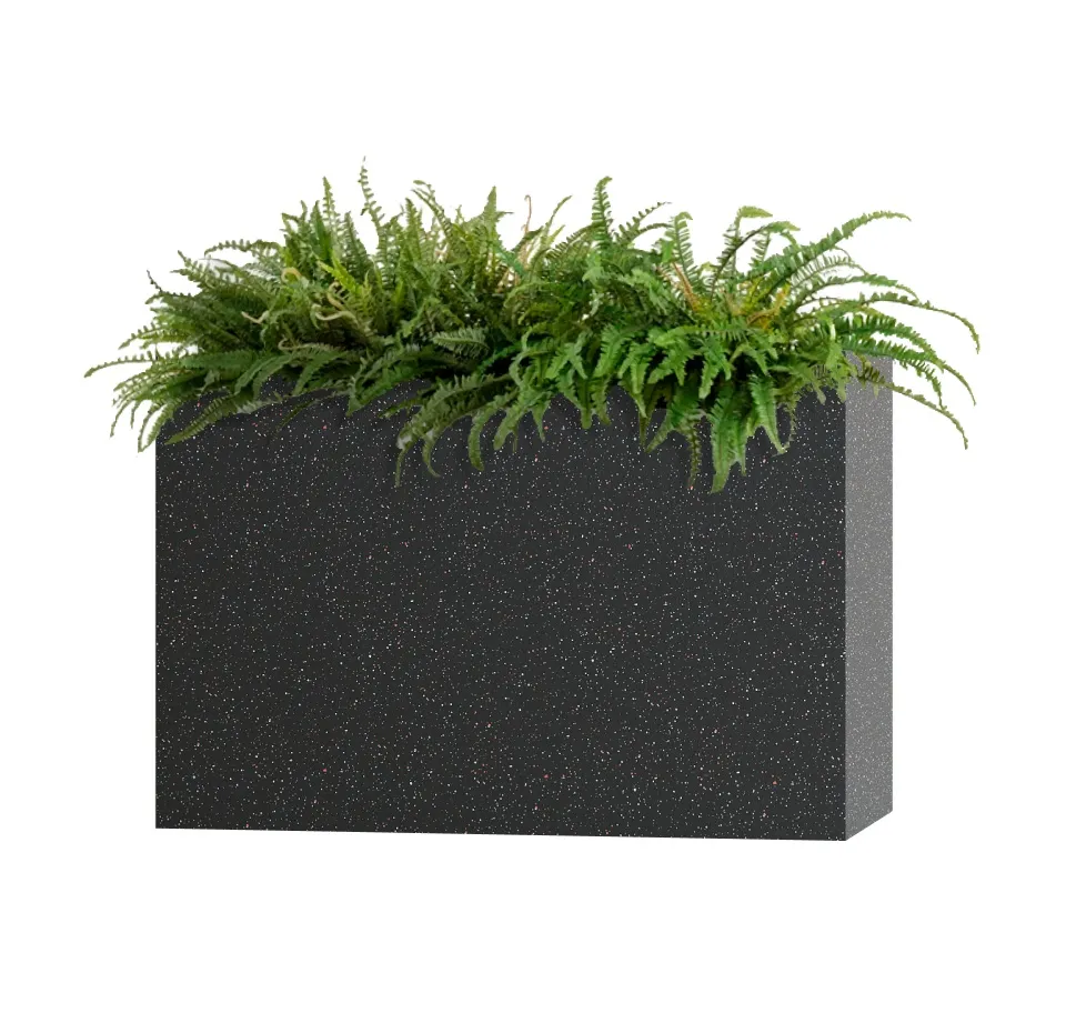 Эта форма прекрасно подходит для разделения и зонирования любого пространства. Высокое и узкое кашпо позволяет выделять ниши, очерчивать границы, отлично справляется с задачами контейнерного озеленения. В зависимости от видов растений может смотреться лаконично или создавать ту атмосферу, которой хочет добиться дизайнер, например, будучи частично скрыто листвой или ниспадающими побегами.
