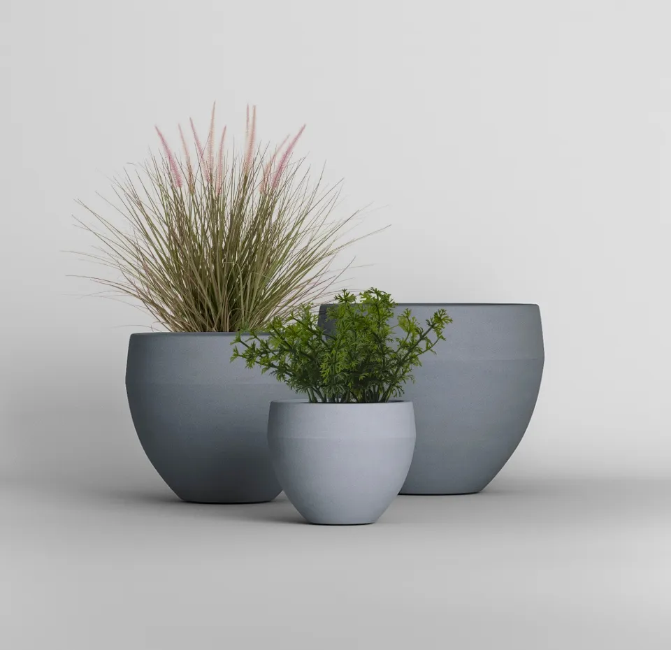 Кашпо округлой формы с широким верхом и плавным сужением к основанию. Такой силуэт подчёркивает пышность посадок, создаёт лёгкий, дружелюбный образ и при этом выглядит аккуратно благодаря компактному основанию. Мягкие линии делают форму универсальной — она одинаково органично смотрится в интерьере и в саду, легко сочетаясь с разными стилями оформления.