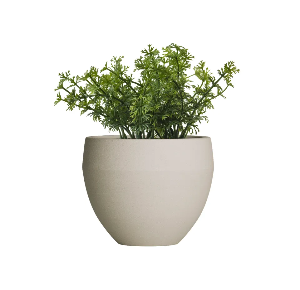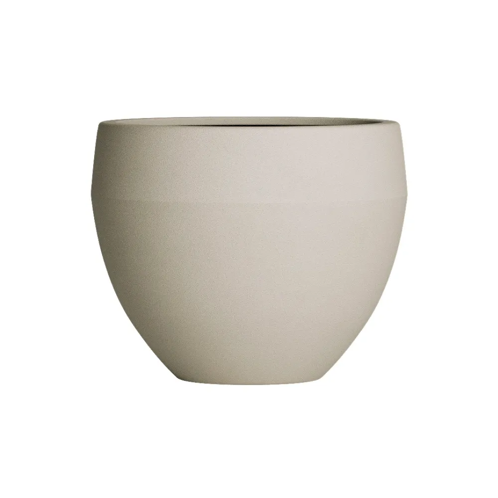 Кашпо округлой формы с широким верхом и плавным сужением к основанию. Такой силуэт подчёркивает пышность посадок, создаёт лёгкий, дружелюбный образ и при этом выглядит аккуратно благодаря компактному основанию. Мягкие линии делают форму универсальной — она одинаково органично смотрится в интерьере и в саду, легко сочетаясь с разными стилями оформления.