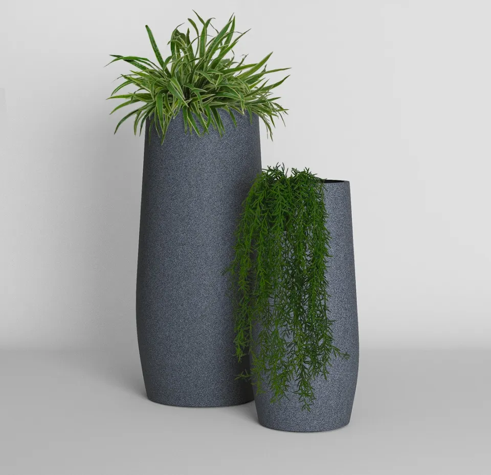 Элегантное объёмное кашпо излучает устойчивость и гармонию. Плавное расширение в средней части создаёт визуальный баланс, а мягкие линии придают изделию уютный, дружелюбный характер. Оно прекрасно подчёркивает пышные кроны растений и одинаково эффектно смотрится как в одиночном исполнении, так и в составе композиции.