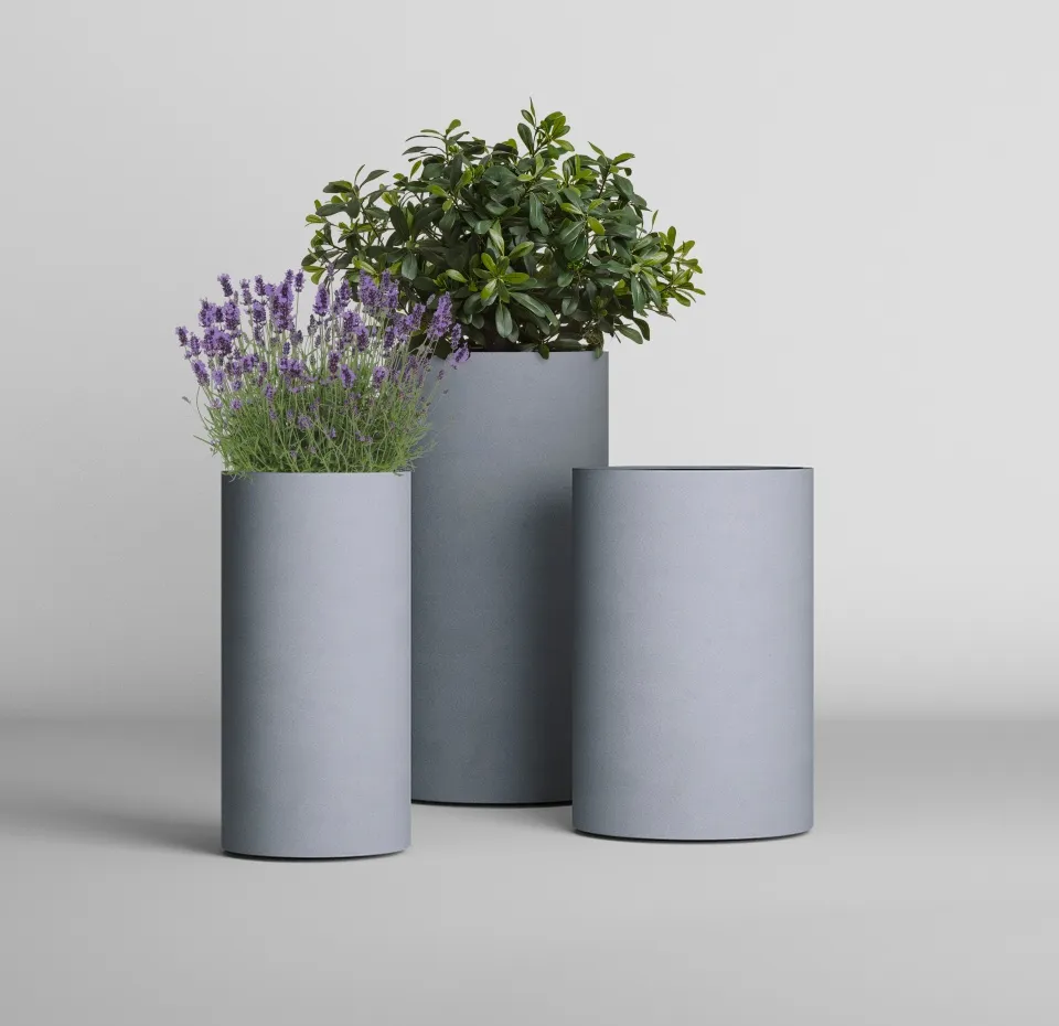 Лаконичное цилиндрическое кашпо с ровными вертикальными стенками — воплощение минимализма и универсальности. Чёткая геометрия придаёт композициям строгий, современный вид, а простая форма делает акцент на растении, не отвлекая внимание лишними деталями. Идеально подходит для интерьеров в стиле модерн, лофт или минимализм, а также для гармоничного уличного озеленения.