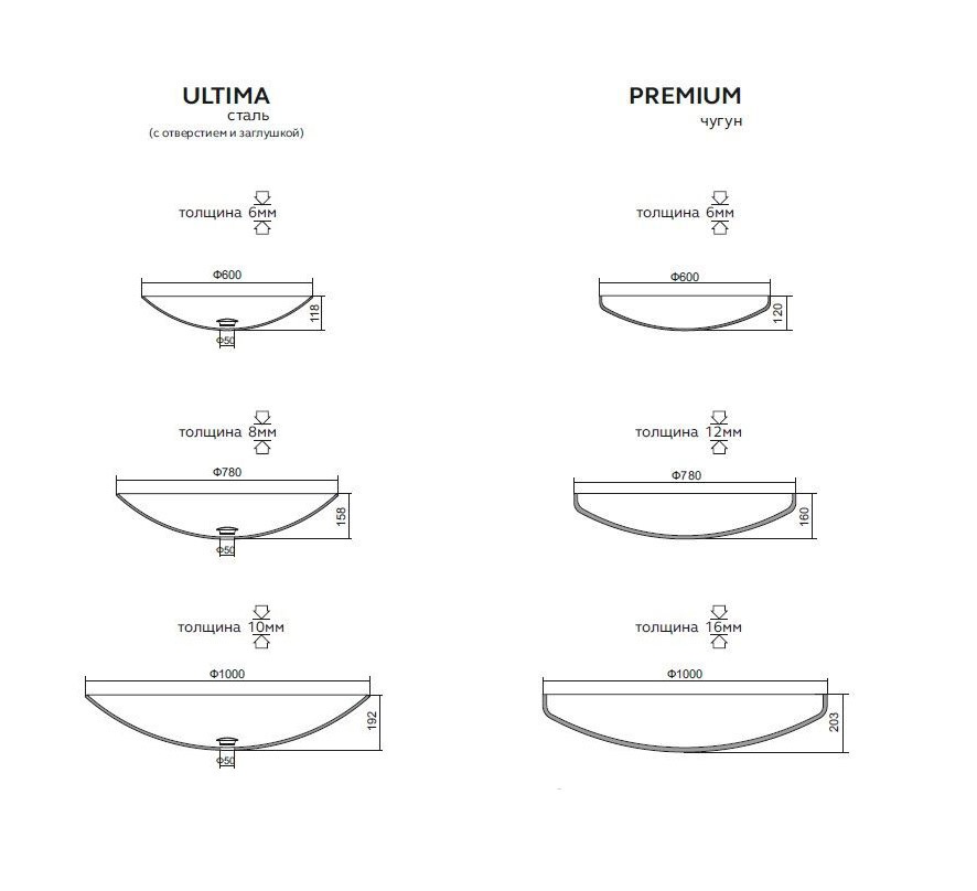 • Толщина чаши: 15 мм