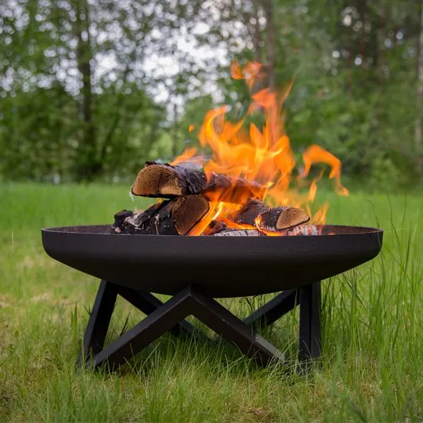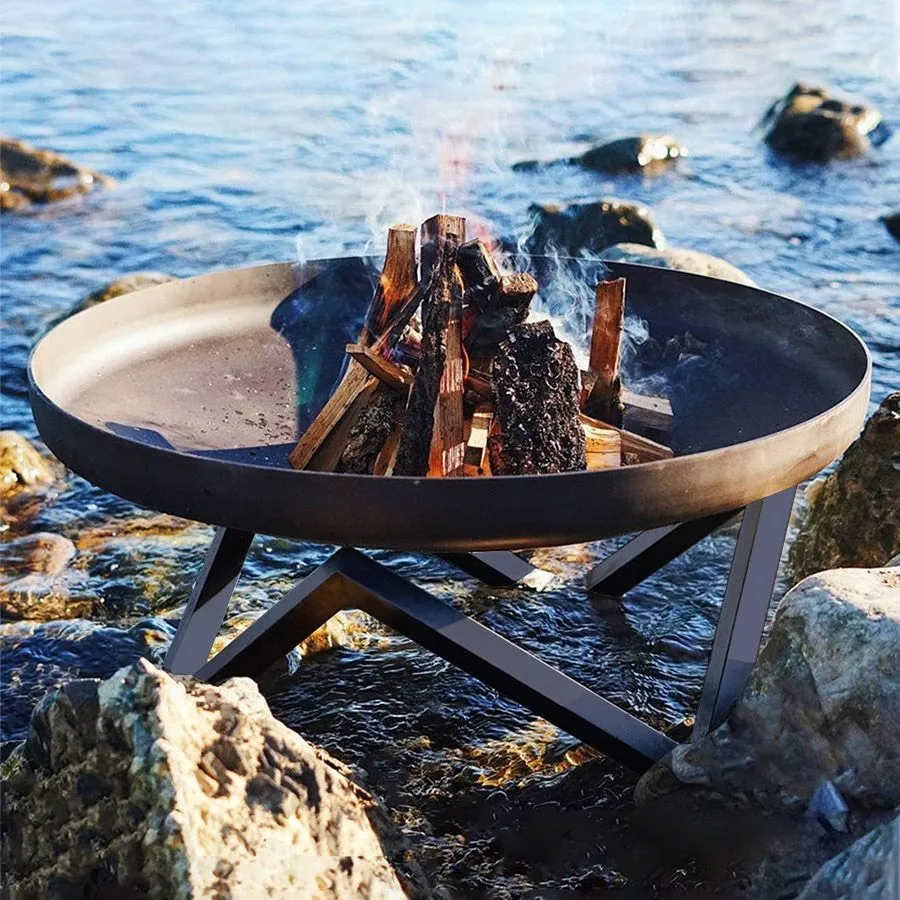 Костровая чаша N-серии имеет удивительное свойство притягивать к себе взгляды не только за счет разведенного в ней огня, но также благодаря своему основанию, придающему ей выразительность и эффектность.