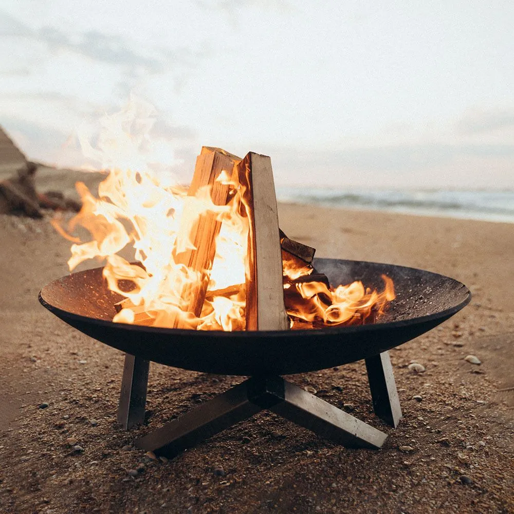 Костровая чаша N-серии имеет удивительное свойство притягивать к себе взгляды не только за счет разведенного в ней огня, но также благодаря своему основанию, придающему ей выразительность и эффектность.