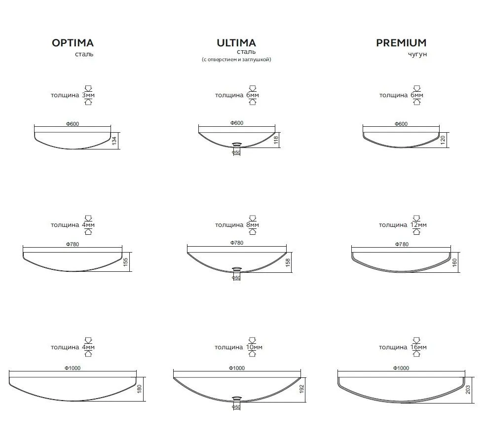 Чугунные чаши CONCRETIKA S-серии - S60, S80, S100 представляют премиальную линейку нашей продукции. Чаши выпускаются в диаметре 60, 80 и 100 см. Чаши отличаются как размерами, так и толщиной металла. У чаши 60 см она составляет 7 мм, у чаши 80 см она составляет больше 10 мм, у чаши 100 см она составляет 16 мм.