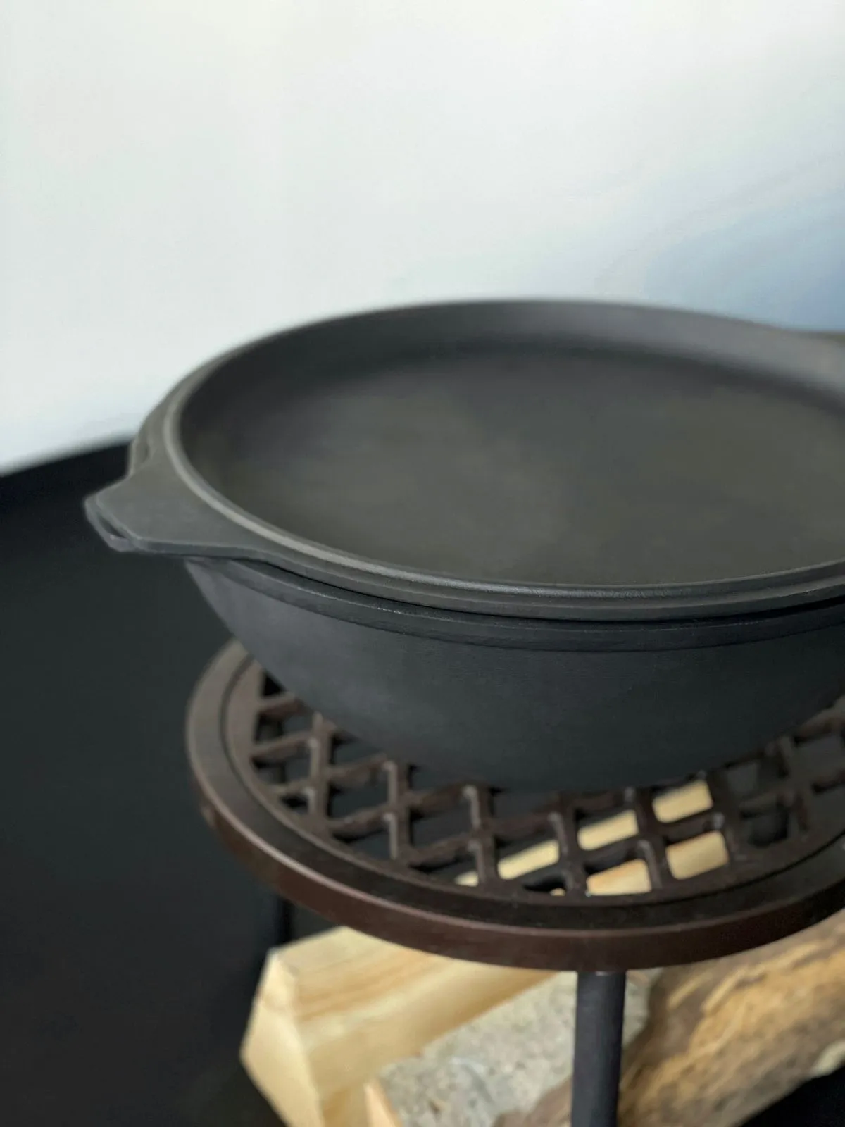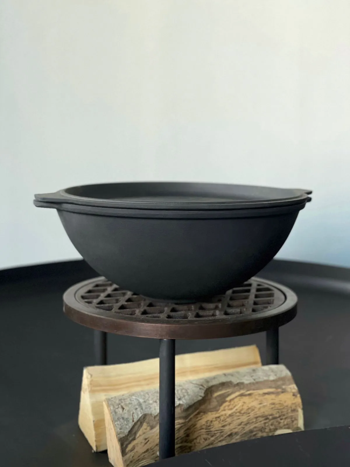 Комплектация: чугунный казан с чугунной крышкой. Крышка так же выполняет роль сковороды, что добавляет разнообразия в процесс готовки на свежем воздухе.