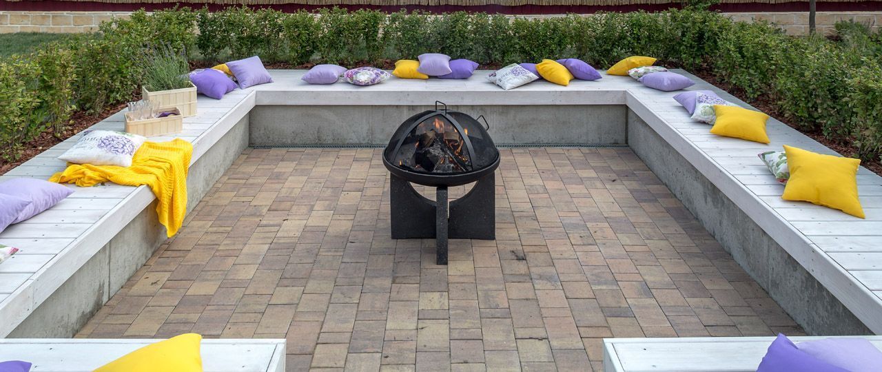 По мнению главных героев программы - Марины и Артема Баевых, костровое место, углубленное в землю – очень функционально: чем не «дом под землей», о котором мечтали дети - Федя и Миша, и в то же время оно напоминает осушенный бассейн. При желании туда можно поставит надувной бассейн, тем более что там продуман слив-дренаж. Также эту углубленную в землю нишу можно использовать как сцену, о чем мечтала наша доченька Маргарита, да и все наши дети любят устраивать нам разные концерты и театральные этюды. В середине очаг, вокруг которого скамейки, украшенные разноцветными декоративными подушечками, на которых могут с комфортом расположиться огромное количество гостей! А какое изысканное кашпо с цветущей в нем лавандой!