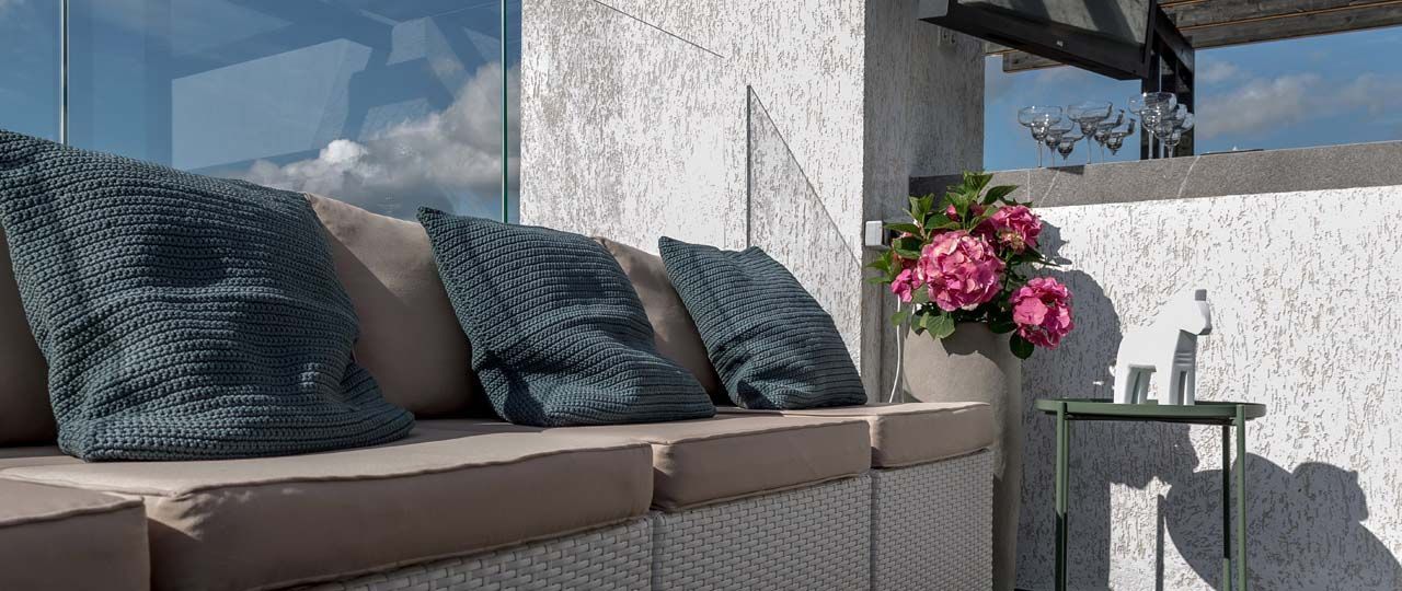 Под руководством дизайнера Татьяны Кононовой на плоской крыше появились кухня, бар, солярий, лаунж-зона и подиум с джакузи. Получилось отличное место отдыха для дружеских и семейных компаний, с местом для готовки, наличием свободного пространства для игр с детьми и танцев.