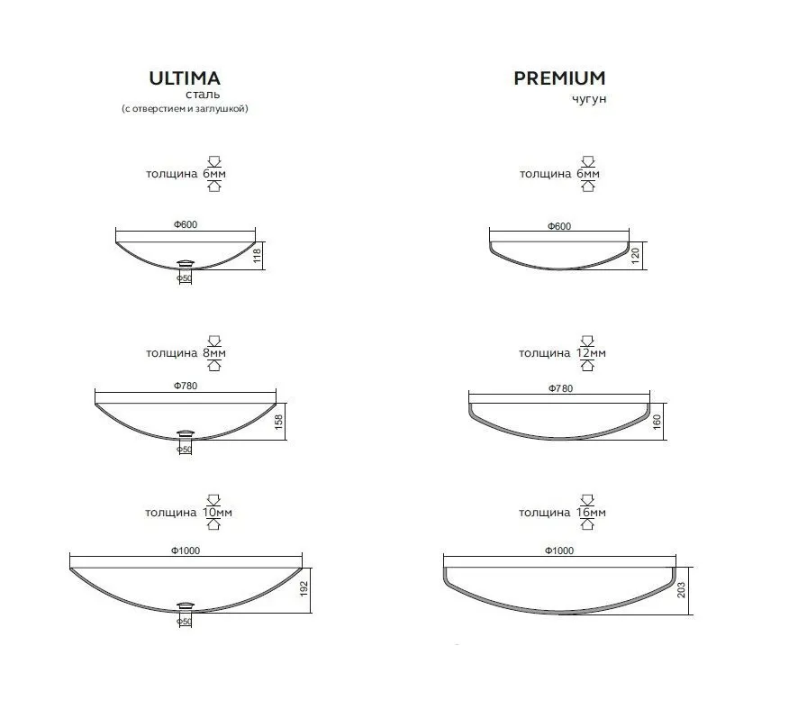 Очаг N-серия представлен в трех размерах – 60, 80 и 100 см в диаметре.