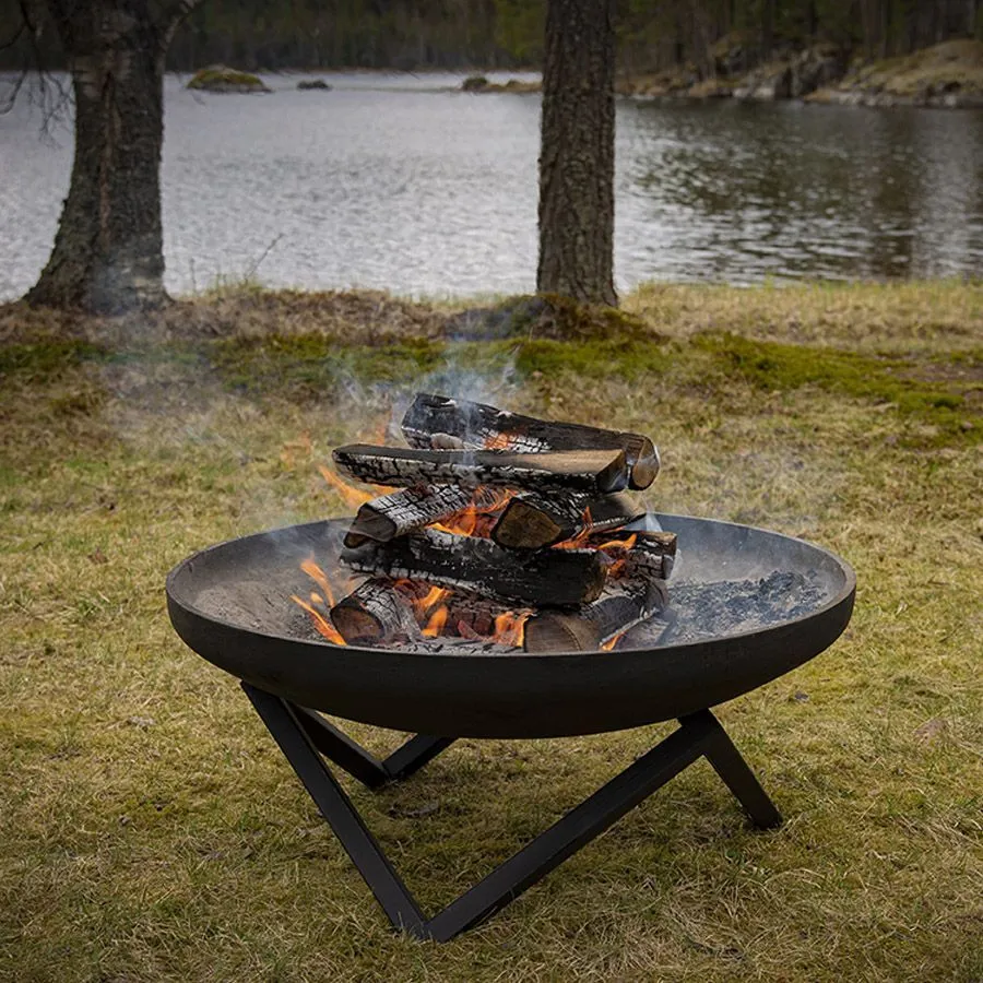 Костровая чаша N-серии имеет удивительное свойство притягивать к себе взгляды не только за счет разведенного в ней огня, но также благодаря своему основанию, придающему ей выразительность и эффектность.
