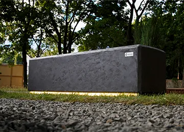 Скамьи из бетона Stonehenge представлены в двух размерах: длинной 100 и 150 см. При необходимости, размеры могут быть адаптированы под Ваши требования.